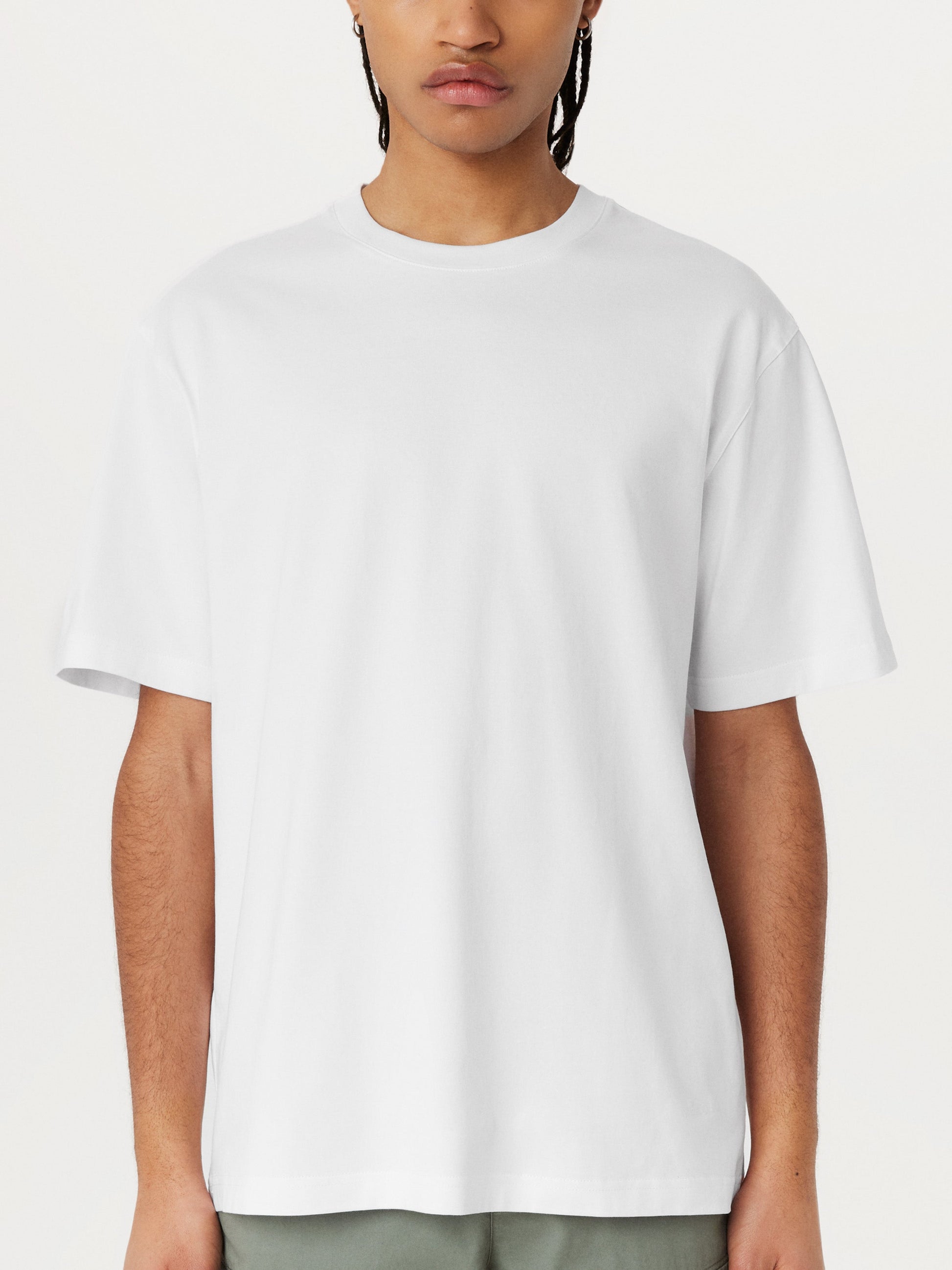 Your favourite short-sleeve T-shirt. Made from soft, thick organic cotton jersey. Timeless crewneck. Tonal topstitch at the collar, shoulders, and armholes.